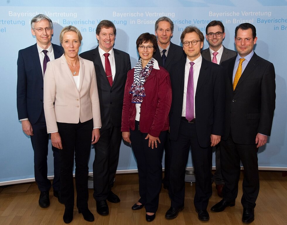 hinten (v.l.): Stefan Leiner - GD Umwelt, Eberhard Hartelt - Umweltbeauftragter des DBV, Dr. Claus Albrecht - Kölner Büro für Faunistik, Wolfgang Schleicher - Referatsleiter Vertretung des Freistaates Bayern bei der EU, Philipp Freiherr zu Guttenberg - Vorsitzender Aktionsbündnis Forum Natur